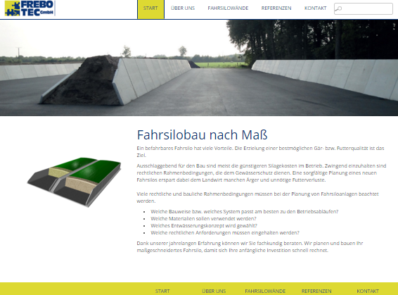 Beschreibung: Responsive Seite für Fahrsilobau. Grafische Gestaltung und Konzeption stammen von der Agentur sparq Design