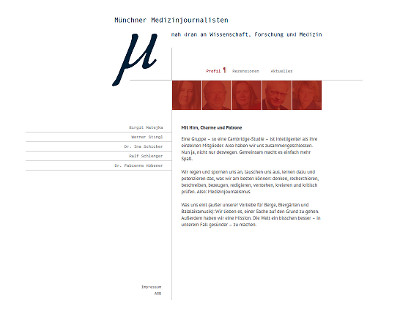 Beschreibung: Gemeinsame Seite einer Gruppe von freien Medizinjournalisten aus dem Münchner Raum. Umsetzung und Ausbau eines vorhandenen Layouts in webEdition.
